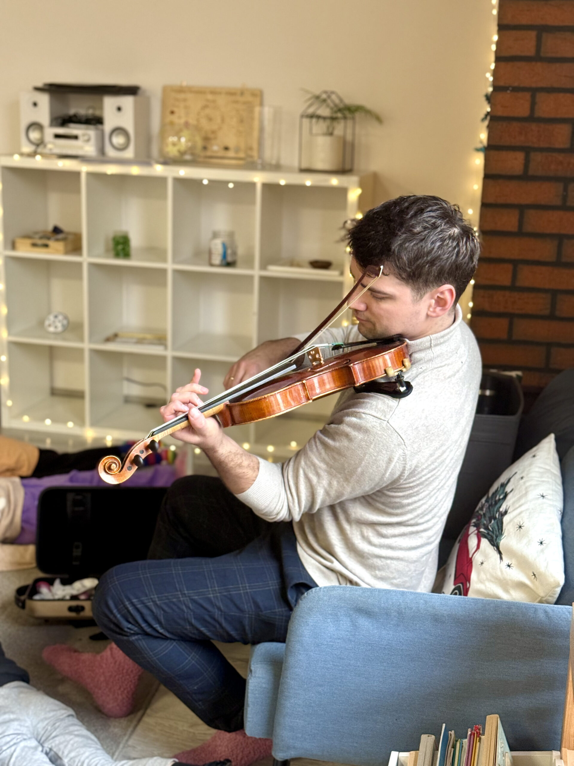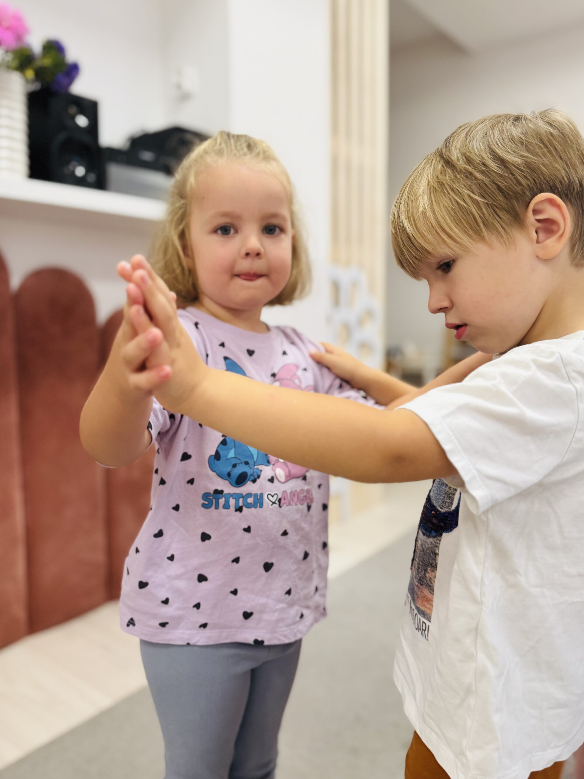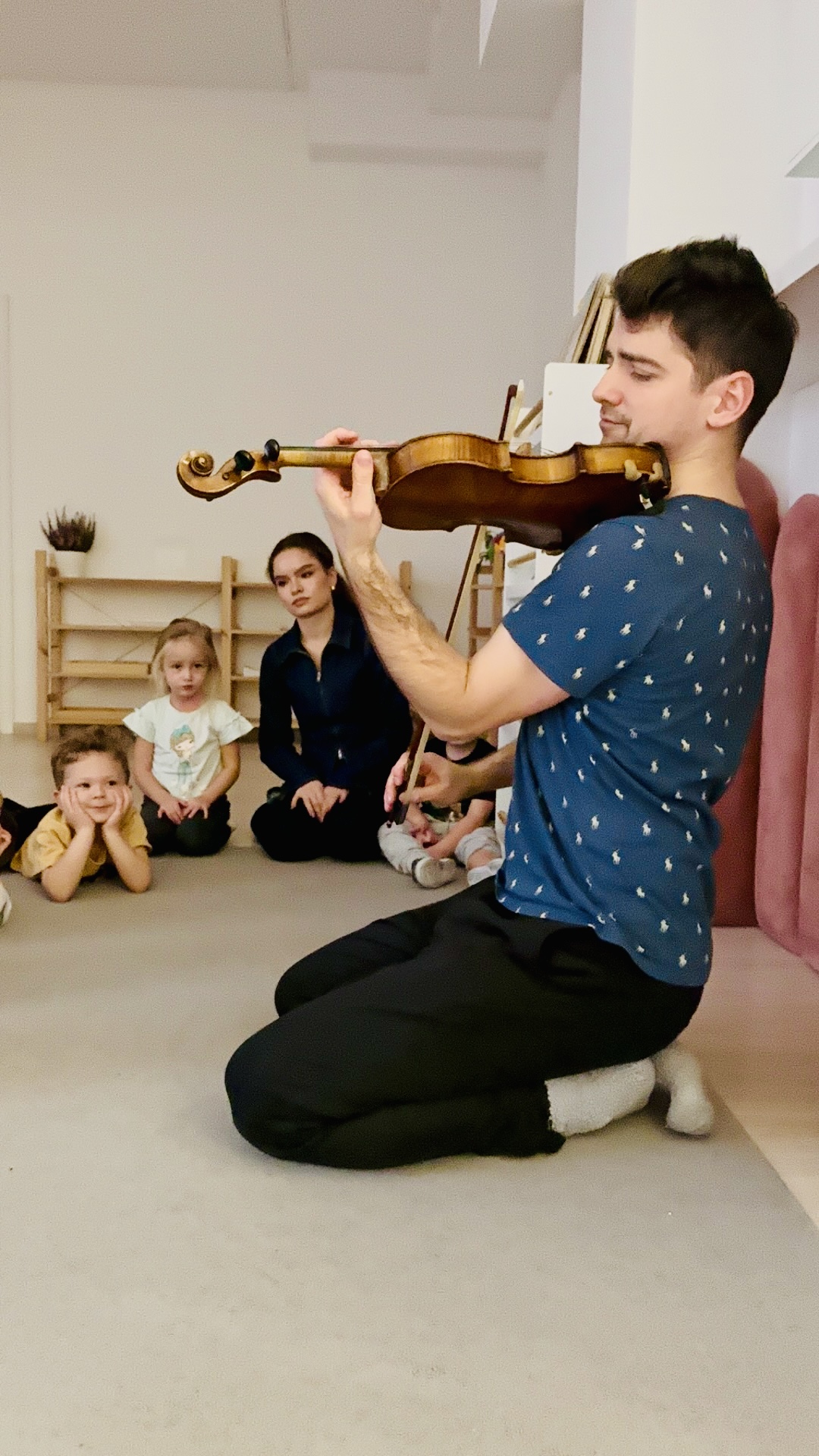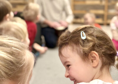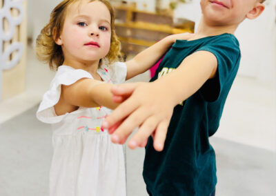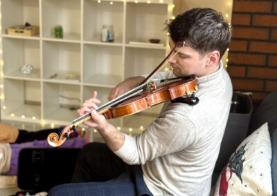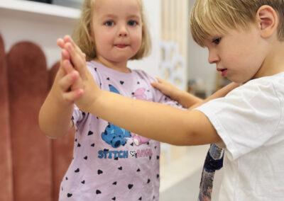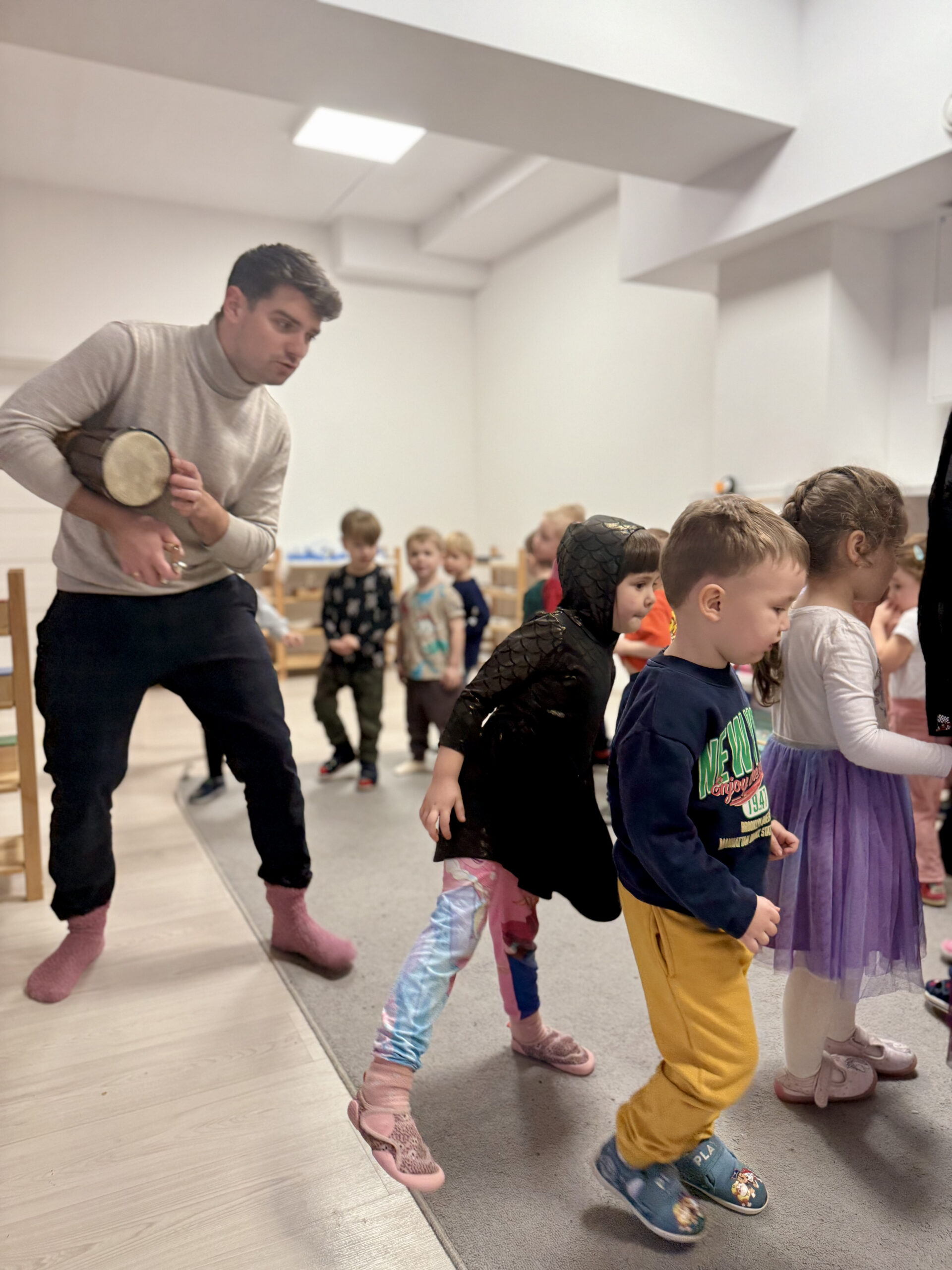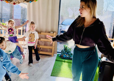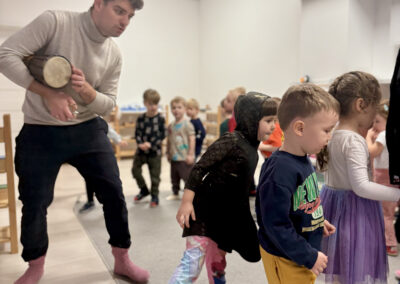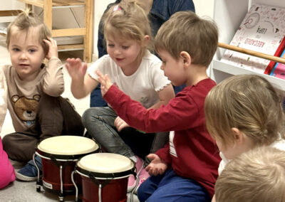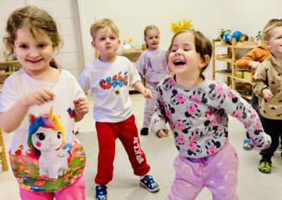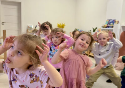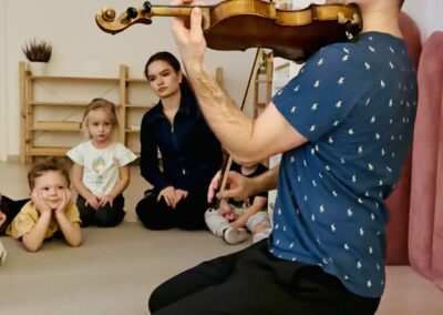 Nasze zajęcia to wyjątkowe spotkanie dzieci z dźwiękiem i rytmem. Przedszkolaki mają okazję posłuchać gry na skrzypcach na żywo, poznać brzmienie instrumentu oraz doświadczyć jak powstaje muzyka. Dzieci aktywnie uczestniczą w zajęciach poprzez śpiew, zabawy rytmiczne i ruch przy muzyce, co rozwija ich wrażliwość muzyczną, wyobraźnię oraz poczucie rytmu. Spotkanie ma radosny i angażujący charakter, wspiera koncentrację oraz zachęca do twórczej ekspresji.