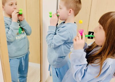 Usprawnianie narządów mowy: Ćwiczenia języka, warg i podniebienia poprawiają precyzję artykulacji.