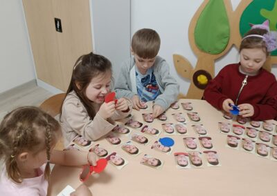Zajęcia prowadzone przez psychologa w naszym przedszkolu mają na celu wspieranie harmonijnego rozwoju emocjonalnego i społecznego dzieci oraz budowanie spójnej współpracy na linii nauczyciel–rodzic–dziecko. Podczas spotkań dzieci poprzez zabawę, rozmowę i ćwiczenia uczą się rozpoznawać i wyrażać emocje, radzić sobie z trudnościami, rozwijać empatię oraz budować pozytywne relacje z rówieśnikami.
