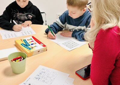 – realizacja zadań w ramach terapii pedagogicznej (m.in. nauka czytania, pisania, liczenia), w tym terapii ręki i elementów treningu umiejętności społecznych.